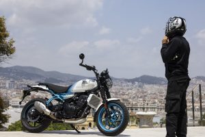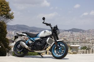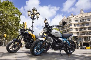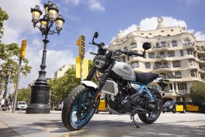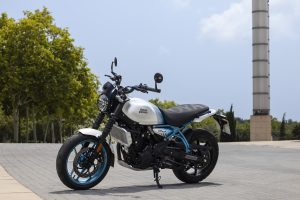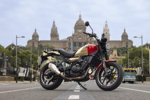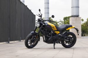 The ergonomics on the Guerrilla 450 are designed to work in harmony with different riding styles, enabling riders to handle everything from fast-flowing sweeping open roads, to tight technical switchbacks. The rider geometry ensures that the stance remains upright thanks to the low seat and mid-set footpegs. With a dynamic chassis the Guerrilla 450 is engineered for agility and quick handling, offering stable yet light handling and easy maneuverability. The 43mm telescopic front fork and linkage-type mono-shock at the rear boost rider confidence without sacrificing comfort. Paired with 17-inch front and rear tubeless tires and 1440 mm wheelbase, the motorcycle maintains exceptional stability and control, ensuring a planted and stable, yet nimble ride. This engaging and responsive riding dynamic makes the Guerrilla 450 ideal for city commuting and spirited rides on winding roads, striking a balance between practicality and performance.