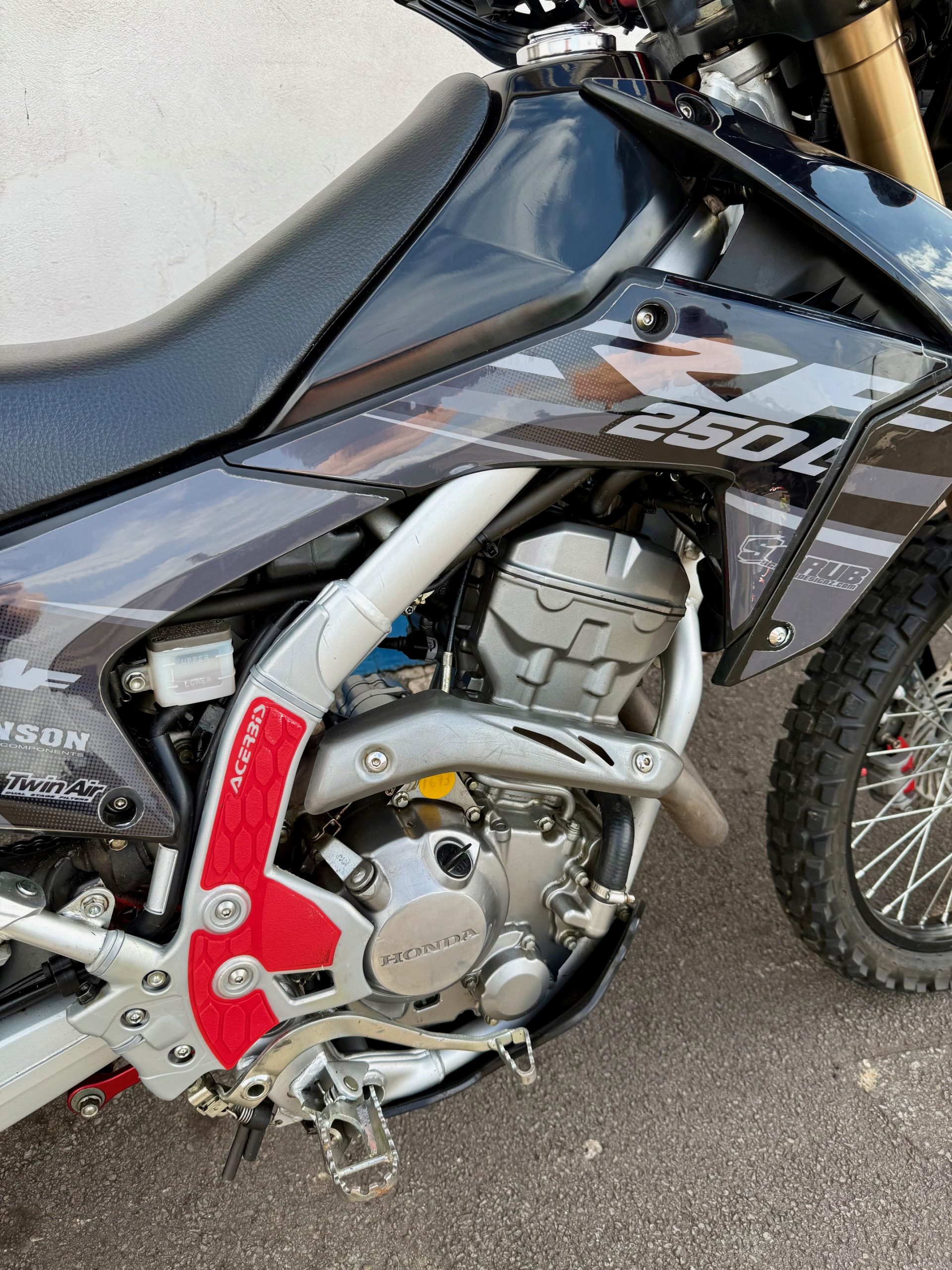 The 2020 Honda CRF250LA-K is part of Honda’s dual-sport line-up, designed to balance road practicality with genuine off-road capability. Powered by a reliable 249cc liquid-cooled single-cylinder engine, it delivers smooth and manageable power ideal for both commuting and trail riding. Its lightweight build and slim profile make it agile in urban environments, while the long-travel suspension and high ground clearance allow it to handle rough terrain with ease. With styling inspired by Honda’s CRF motocross range, the bike carries a rugged and aggressive look that reflects its dual-purpose nature.