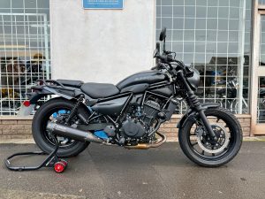2025 Kawasaki EN 500 Eliminator SE (EL 450 BRFNN), Metallic Carbon Gray / Flat Ebony, 2644 miles only, in excellent condition. Great bike for new rider; low seat height.