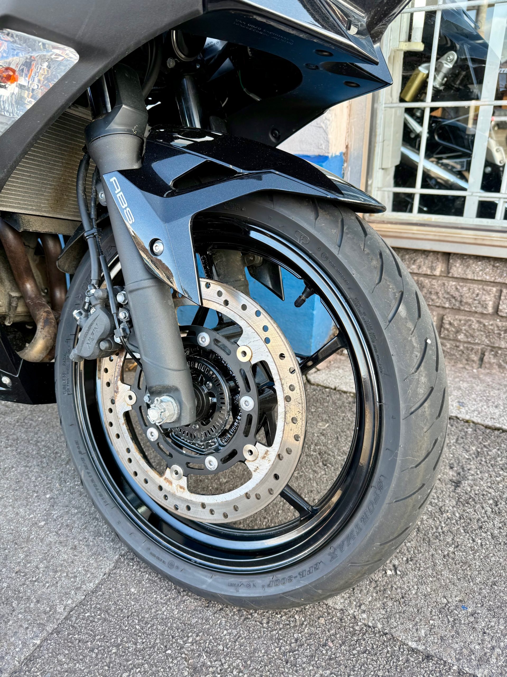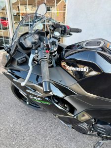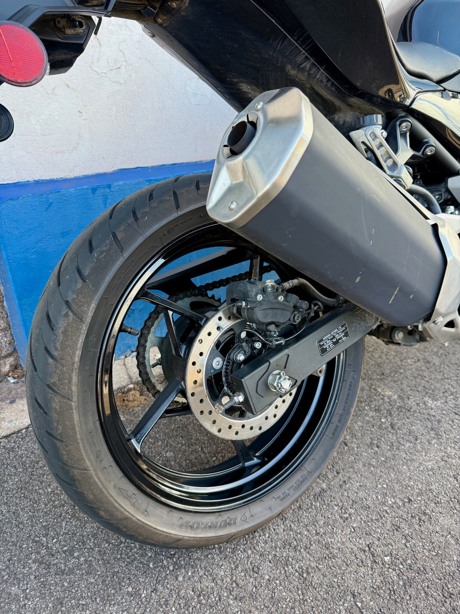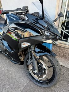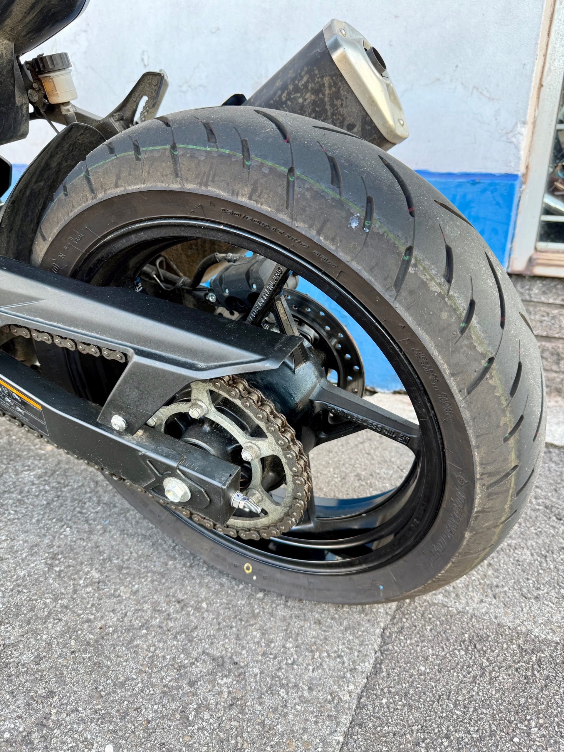 Ergonomically, the bike provides a relaxed yet engaged riding posture, helped by a slightly raised handlebar and footpeg placement. Wide bodywork and thickly cushioned seating offer surprisingly effective wind protection and comfort for longer rides, while a bold Ninja-style “face” gives the bike a distinct, aggressive presence on the road.