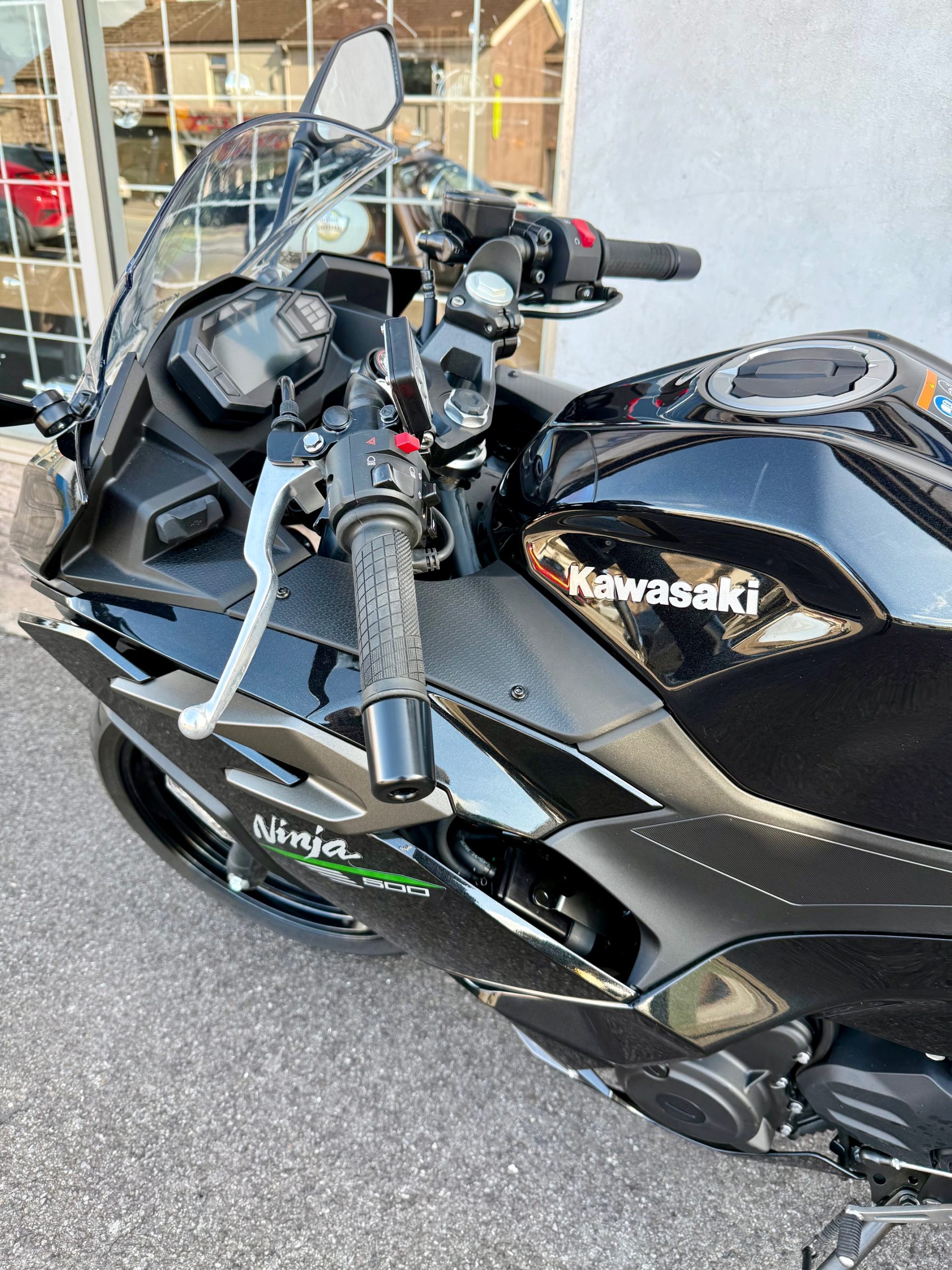 The 2024 Ninja 500 strikes a smart balance between sporty character and everyday-friendly ergonomics. It features a 451 cc liquid-cooled parallel-twin engine tuned for smooth, approachable performance—ideal for both A2-licence riders and those stepping up from smaller capacity bikes. The engine delivers usable power through a broad rev range, peaking around 45 PS, paired with 6-speed transmission and a light-action, racing-inspired assist & slipper clutch. Its compact trellis frame and short-wheelbase design give it nimble, confident handling, while the slim seat design and modest seat height ensure riders of varying statures can plant their feet firmly on the ground.