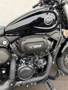 Engine: 125 cc, liquid-cooled, 2-cylinder V-twin, 6 valves, EFI