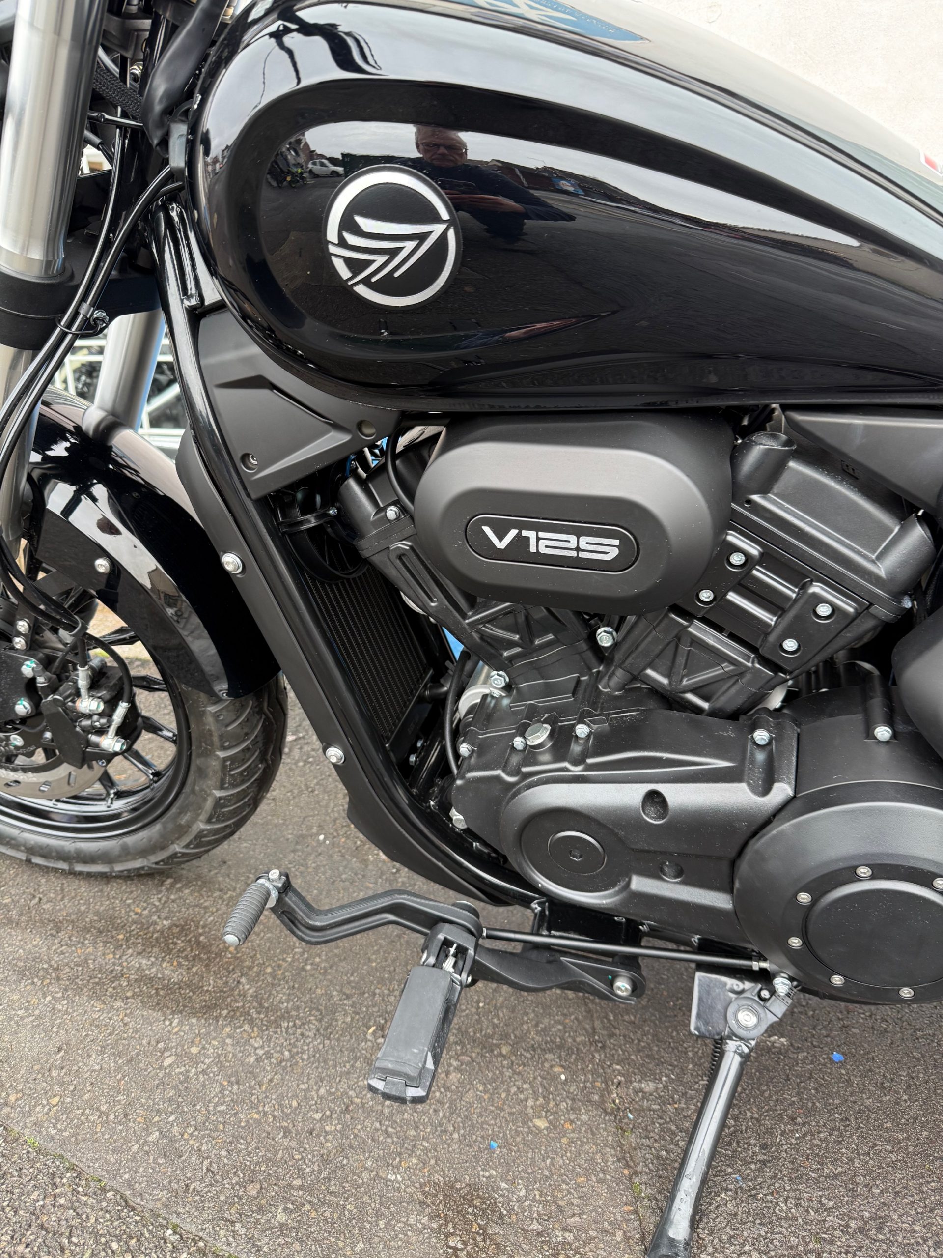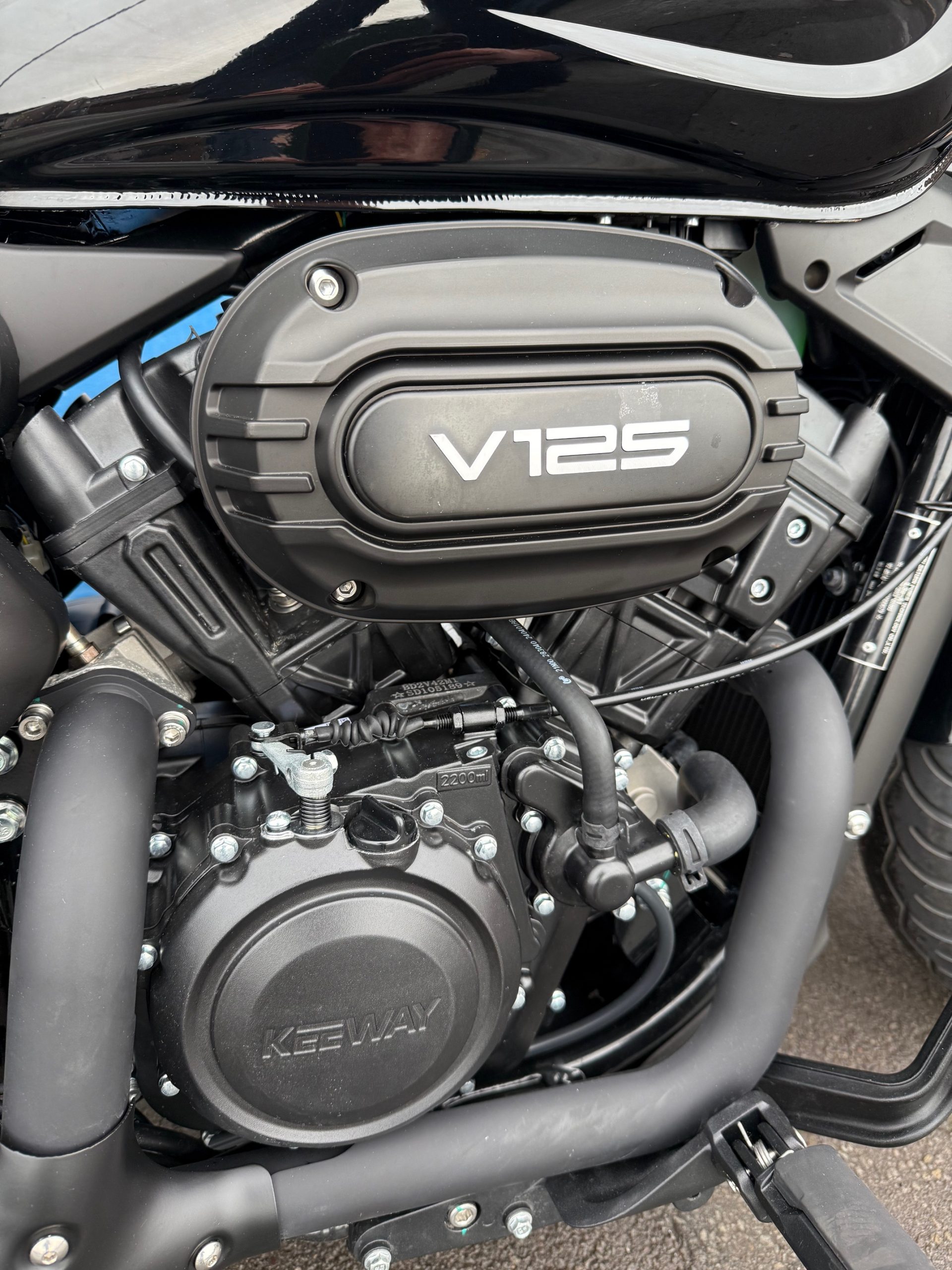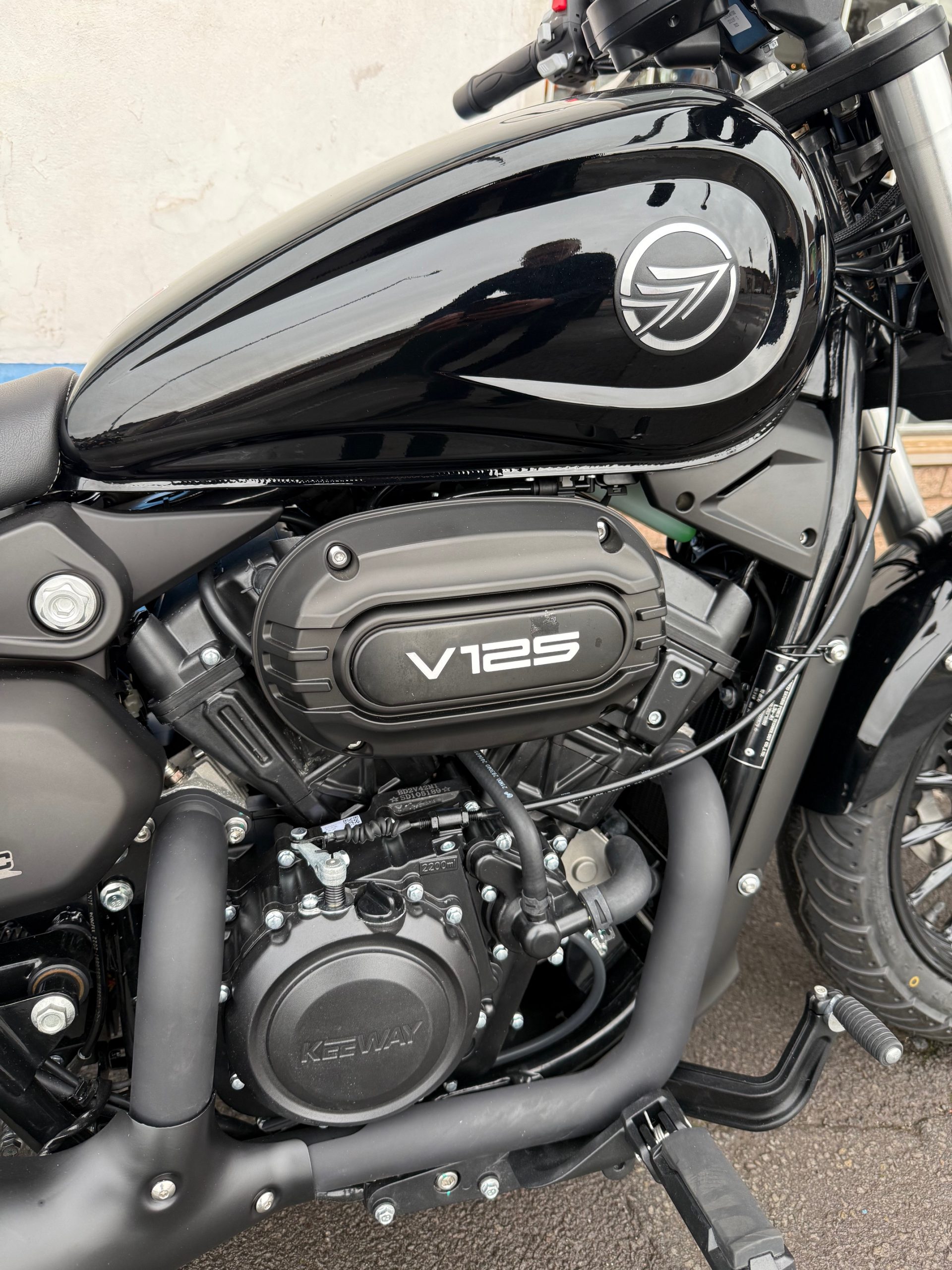 The 2025 Keeway RKV 125 C is a distinctive small-capacity cruiser that blends classic V-twin styling with modern, learner-legal performance. At its heart sits a 125 cc liquid-cooled, 2-cylinder V-twin engine with a 6-valve SOHC layout and electronic fuel injection, producing around 10.2 kW (≈13.7 hp) at 8 500 rpm and 14.4 Nm of torque at 6 500 rpm—a healthy output for its class that gives it both character and usable performance on urban or rural roads. The liquid cooling and EFI system help smooth power delivery and keep temperatures in check, while a 6-speed gearbox and wet multi-plate clutch provide predictable shifting and control. Its styling cues, like the 2-into-1 exhaust and full LED lighting including a DRL that projects the Keeway logo, reinforce the classic cruiser vibe with a modern twist.