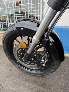 Chassis and comfort features on the RKV 125 C punch above its weight. Upside-down front forks paired with dual rear shock absorbers give it a balanced feel, while front and rear disc brakes with a combined braking system (CBS) inspire confidence in stopping power. A low seat height around 680–690 mm and a relatively long wheelbase make it accessible and comfortable for a wide range of riders. Practical touches include a sizeable fuel tank (around 15 L) for good range between fill-ups and cruiser ergonomics that encourage relaxed riding. With modern LED illumination and cruiser styling cues, it’s positioned as an eye-catching, manageable entry-level machine for new riders or anyone seeking easy-riding fun with retro flair.