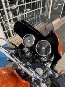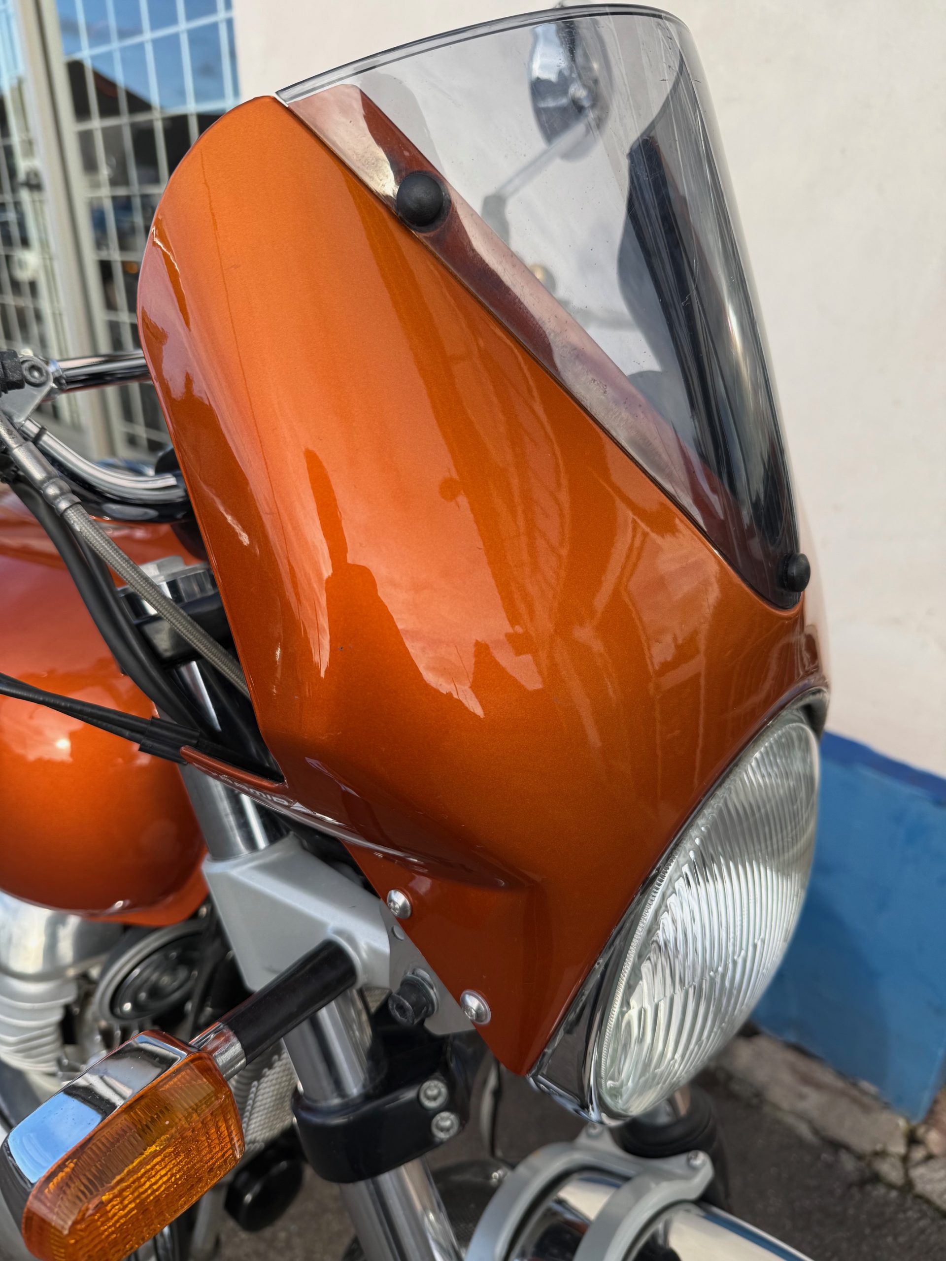 The 2019 Royal Enfield Interceptor 650 in Orange Crush stands out with its unmistakable retro charm and vibrant colour scheme. The warm orange tank, paired with classic black side panels and generous chrome detailing, gives the bike a distinctly vintage-inspired presence. Its upright riding position, wide handlebars and approachable ergonomics make it a relaxed and confidence-building machine whether you’re newer to motorcycling or simply appreciate an easy-going, stylish roadster.
